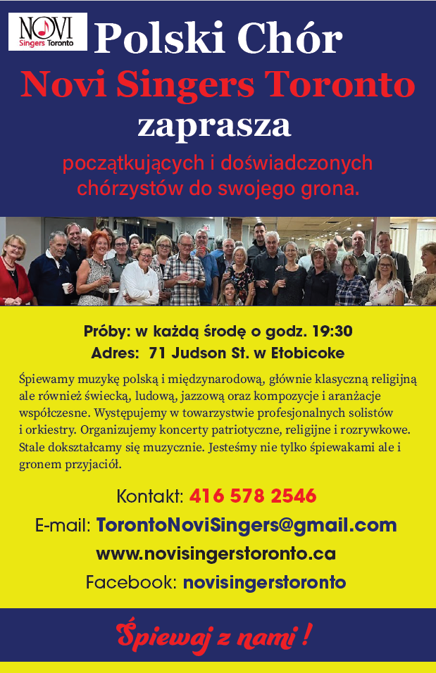 A Polish community choir in Toronto, sharing the beauty of sacred and contemporary music since 2014 under the baton of Maciej Jaśkiewicz .